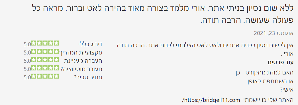 שמי אורי בריליאנט, ואני מלמד בניית אתרים וקידום אתרים כבר מעל 15 שנה דרך אתר ממון. קורס בניית האתרים החינמי הוא קורס הדגל שלנו, והוא קיים (ומתעדכן כמובן) כבר כ14 שנה. הקורס חינמי (אמרתי כבר?), ואנחנו תומכים לאורך כל הדרך בקבוצת הוואטסאפ שלנו (תקבלו קישור אחרי ההרשמה), אז מה בעצם יש לך להפסיד בלנסות?